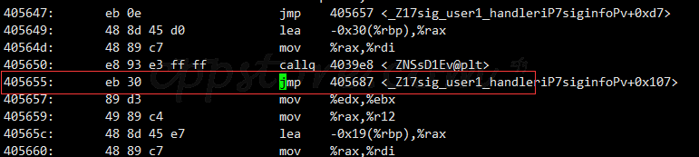 2、间接跳转:目标是从寄存器或存储器位置读出来的。如:jmp *%eax间接跳转字节码基本都是ff,也是绝对跳转。就是跳转到这个地址。这个区别于e9和eb是相对地址。